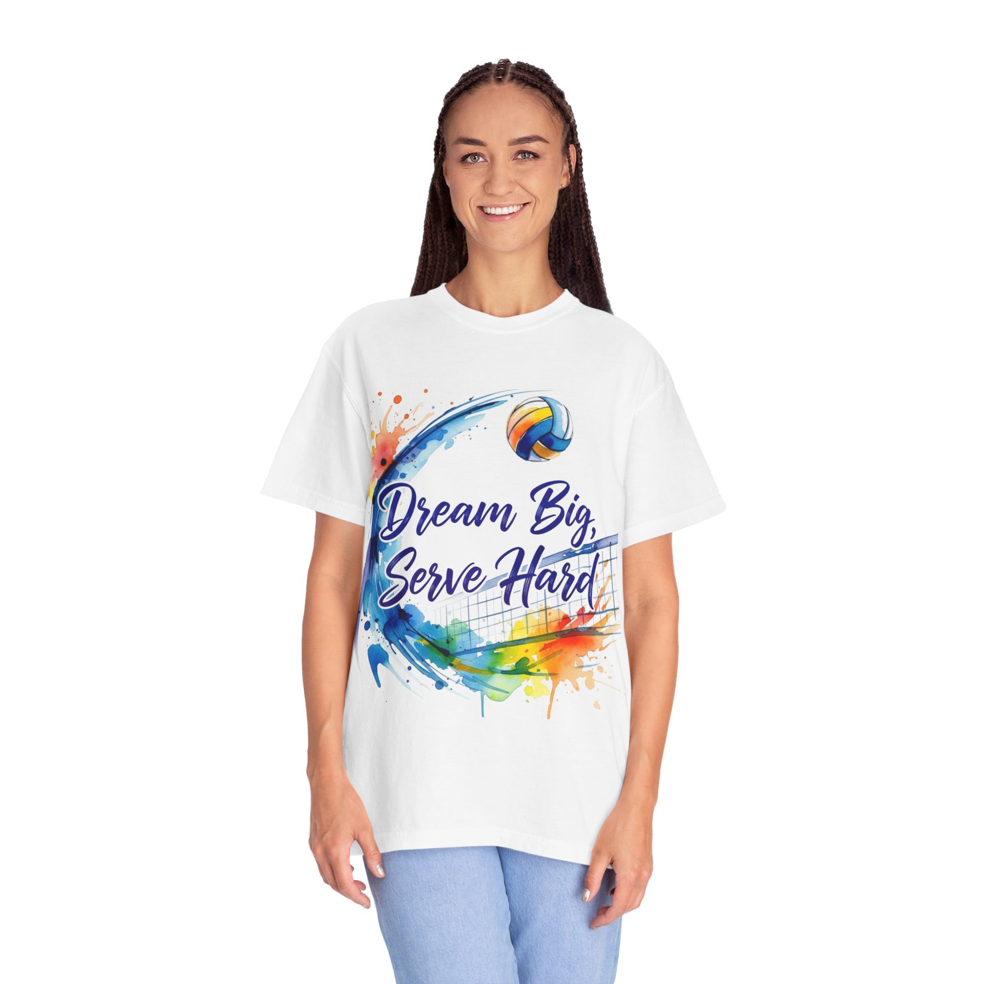 Volleyball T‑Shirt — "Dream Big, Serve Hard" Colorful Watercolor Design